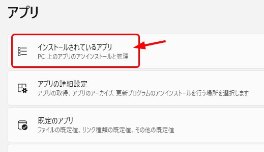 2,インストールされているプログラムが表示されるので、スクロールして①「Jw_cad」を探してクリックします。(後ろの数字はバージョンによって異なります)
