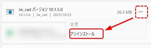 Jw_cad が不要になった時や不具合が発生した時などにアンインストールの作業が必要です。