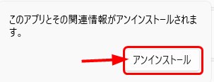 7,確認画面が表示されるので「アンインストール」をクリックします。