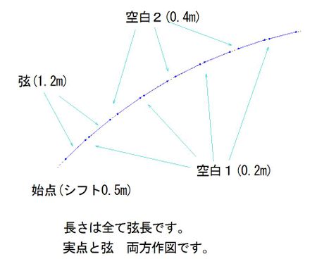 円弧上に指定したピッチで指定した長さの弦を作図します。