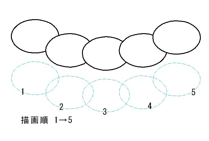 惰円を「描き順」か「範囲指定のクリック順」で重ねて描きます。惰円同士の隠線処理になります。