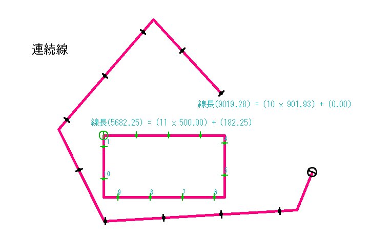 曲線と連続線の総線長さを測定して、指定数で分割したり、指定長さで割付します。