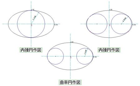 楕円に内接する半径指定の「内接円」及び「曲率円」を作図します。