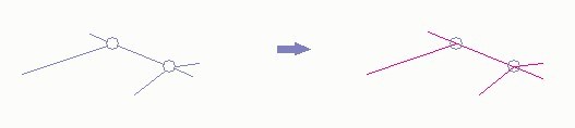 プロットマークで中抜きされた測量図面の線分を延長し、書き込み線色/線種で書き込みレイヤに描画します。