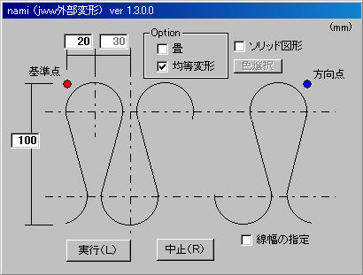 作図画面で指示した波線を作図します。断熱材や畳の断面表記を作図します。