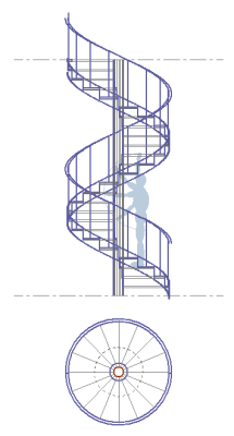 エクセル上で設定された条件で螺旋階段の平面図と立面図を描画する外部変形です