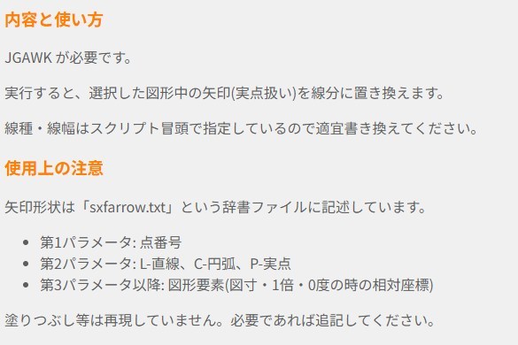 実行すると、選択した図形中の矢印(実点扱い)を線分に置き換えます。