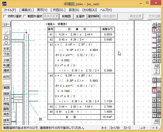 - 計算表は、Jw_cad の目盛読取と揃えることで、計算根拠式などが読取り点にスナップし、作図後の修正が容易になります。