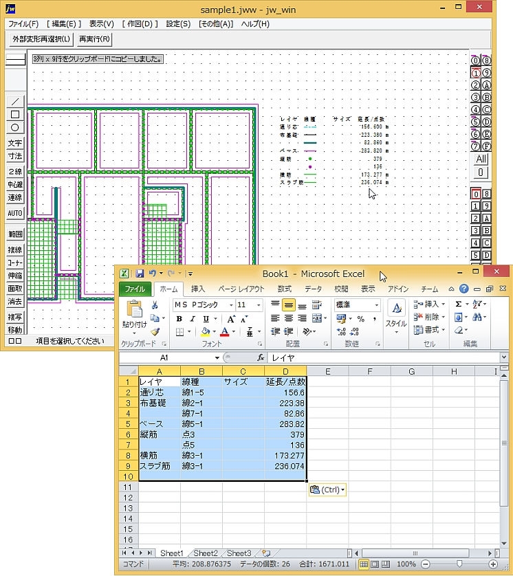 - 集計結果はクリップボードにコピーされるので、エクセルなどで貼付編集できます。
