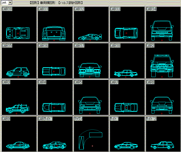 車関係図形 2026.01.13 概要 ハルス設計 ハルス設計 車両関連 JW_CADシンボル用図形 【50個】 図形データは、「.jwk」です。 詳細内容を見る 「.EXE」ファイルが展開(解凍)できない方はこちら 「.zipファイルのダウンロード」
